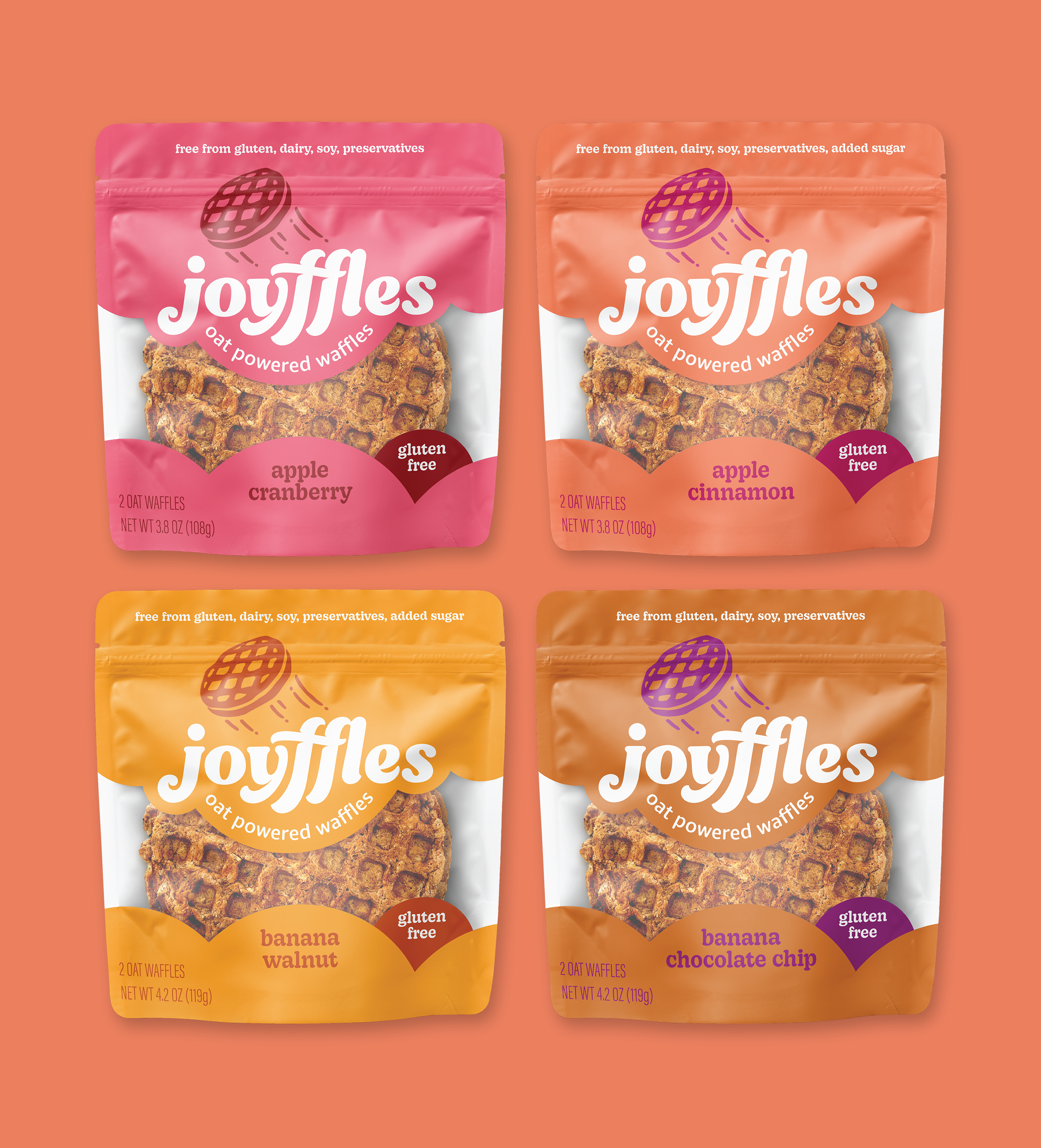 The charismatic founder of Joyffles waffles, Joyce Friedmann, found huge success in her local farmers market and was ready for retail packaging. Unfortunately, her gluten-free oat waffles had no brand voice or distinct personality - detrimental in the highly competitive freezer case. In true collaborative spirit, we hosted a brand workshop and developed the Joyffles mantra - Oat Powered Goodness. Our biggest challenge was an extremely tight deadline. We made the impossible happen - from signed proposal to sending files off to print in 8 days.